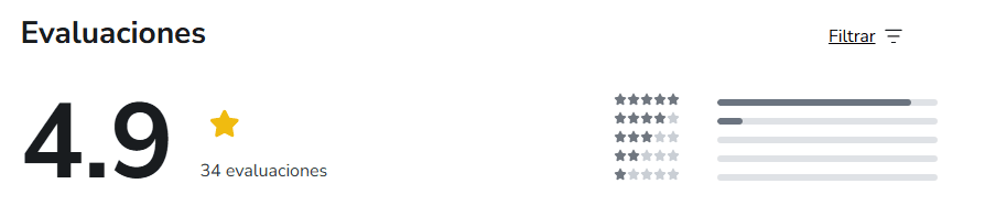 Evaluaciones del curso en Hotmart.
